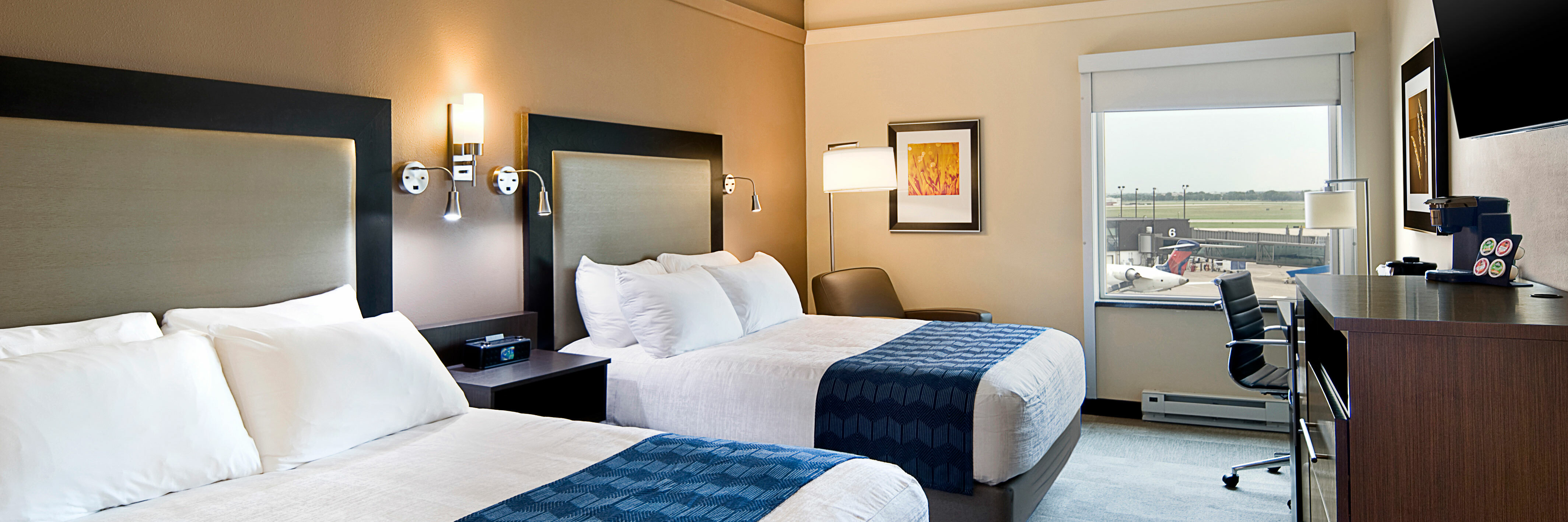 Welcome to our spacious Double Queen Room, a haven of comfort and convenience at our airport-connected hotel. This room boasts not one but two queen-size beds, providing ample space for families or groups of friends traveling together. Whether you're here for business or leisure, you'll find our amenities are exactly what you need.